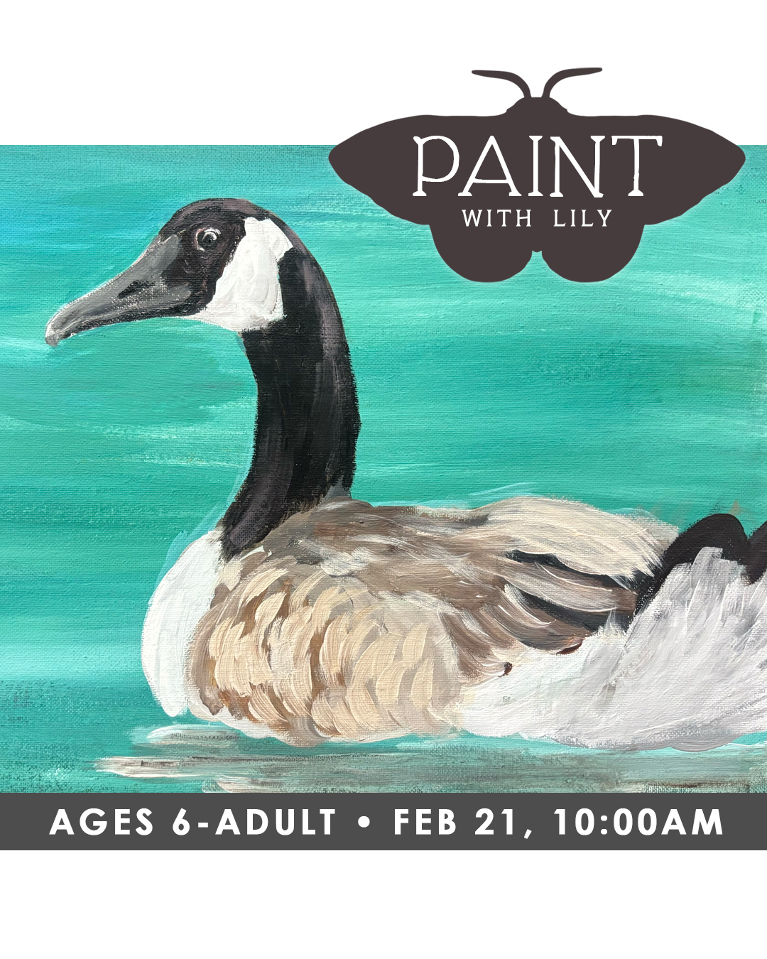 Get creative in this cheerful Paint with Lily class! Students will be guided step-by-step to paint this regal goose on canvas. Lily will walk everyone through basic painting techniques, color mixing, and brushwork in a relaxed, encouraging environment—perfect for beginners and experienced painters alike.