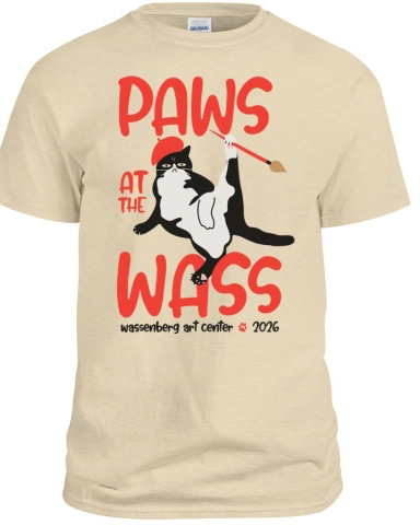 Get ready to show off your love for art and furry friends with our limited-edition “Paws at the Wass” t-shirt! 🐾🎨